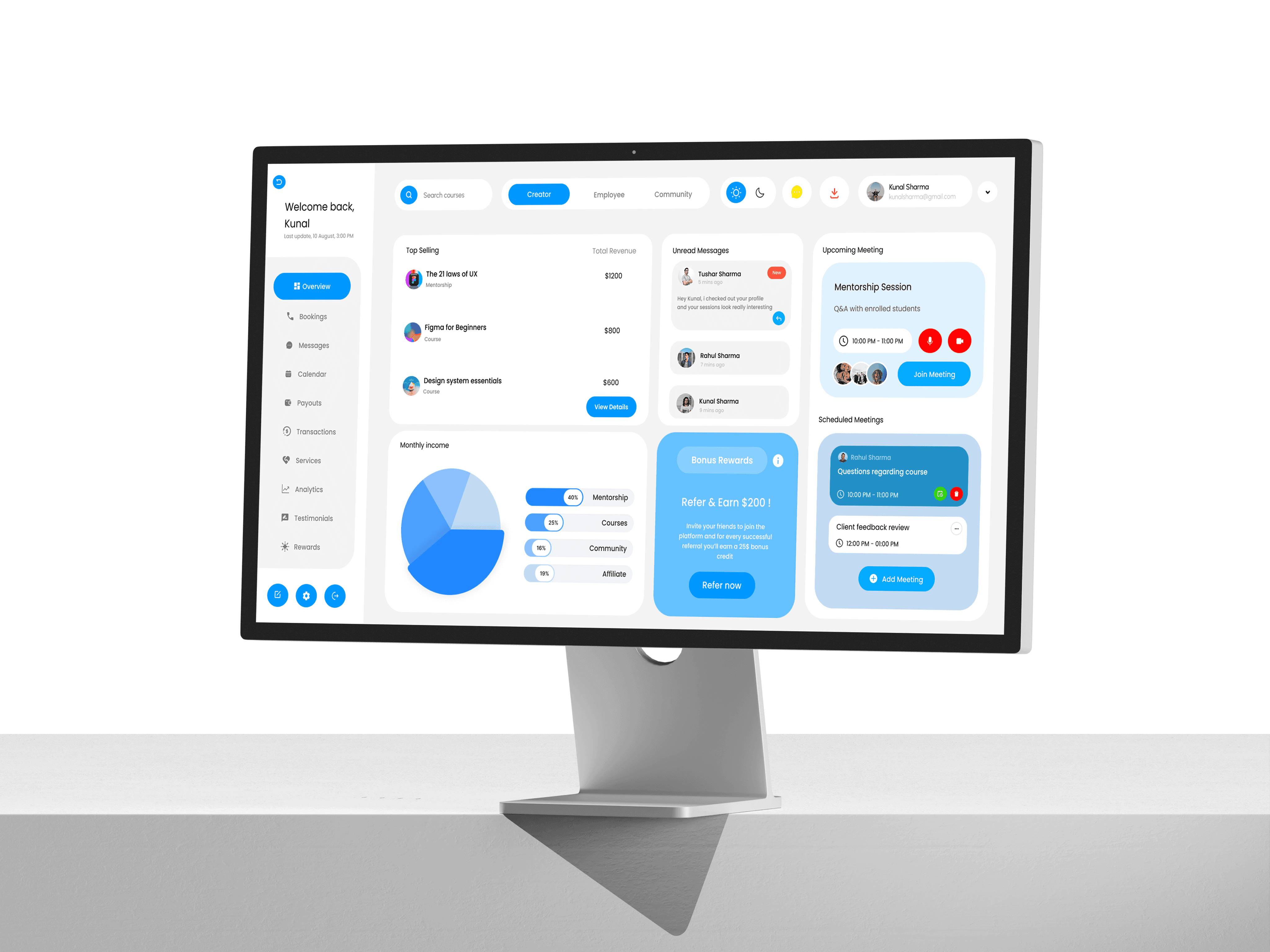 Hello! I'm Kunal, a UI/UX and Web Designer based in Surat, India. I design interfaces manually obsessing over typography, spacing, and visual hierarchy and I pair that craft with AI tools to move faster, explore wider, and deliver more for every client.