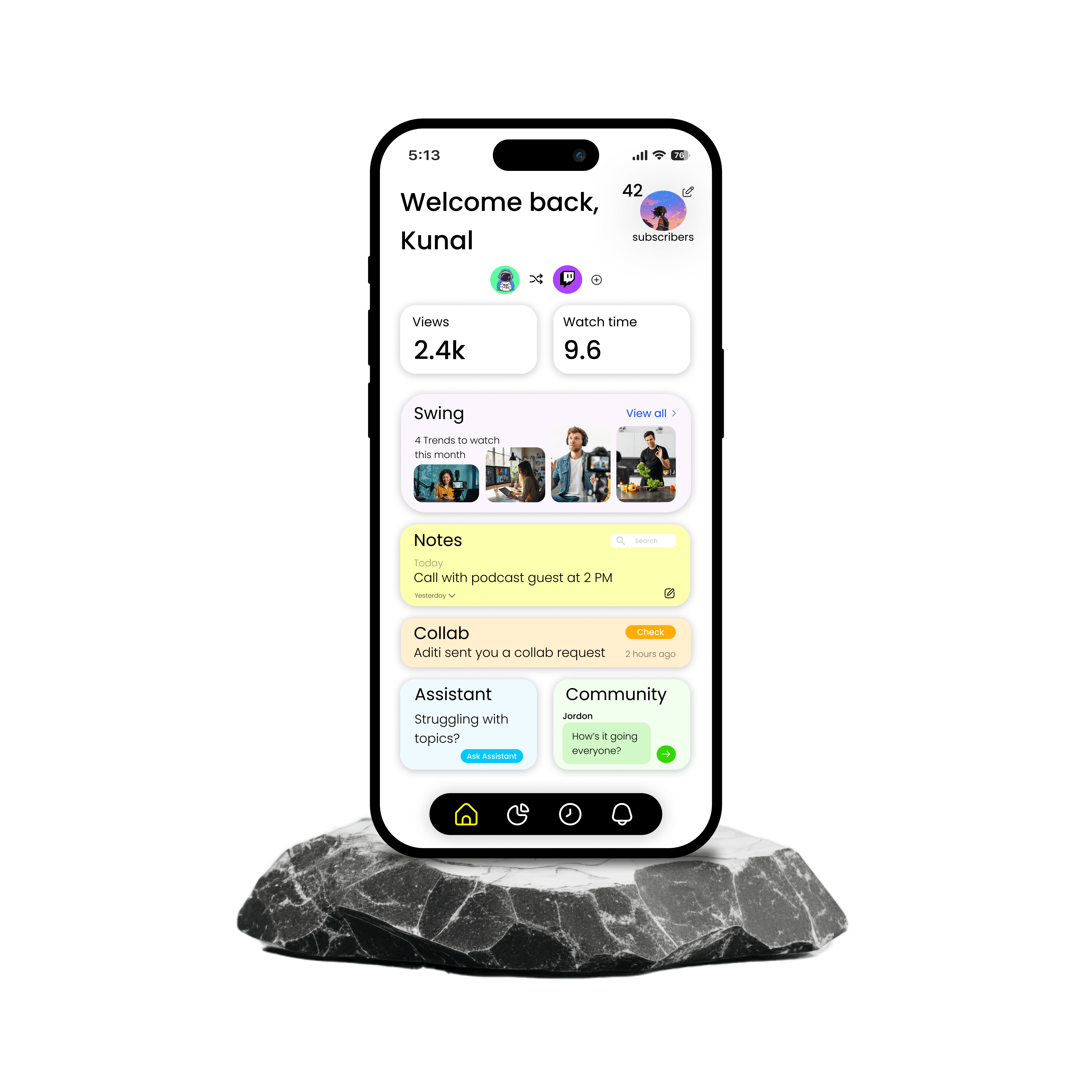 The goal was to translate complex creator analytics into a friendly, personal experience that feels like a daily companion